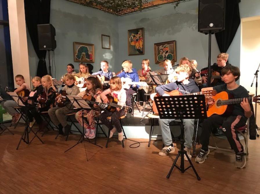 Først vil et, til lejligheden sammensat, guitarorkester på ca. 18 elever spille et guitararrangement af Bent Fabricius-Bjerre’s “Alley Cat”. Derefter vil The Torbens spille et nummer, de selv har skrevet. Og til sidst vil Valdemar og Prince spille deres version af et Phlake nummer.